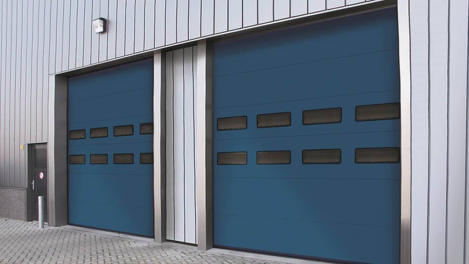 Garanta um fluxo eficiente de bens para o interior e exterior do edifício comercial com as nossas portas seccionais suspensas duradouras e compactas.