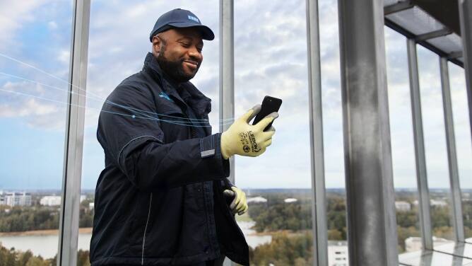A KONE compromete-se a fornecer serviços de manutenção de elevadores de uma forma sustentável. Estamos a equipar a nossa frota com carros de serviço de baixas emissões e utilizamos a manutenção preventiva para reduzir as visitas de manutenção não planeadas. Para os elevadores KONE DX, também compensamos as emissões residuais causadas por atividades de manutenção, diretas e indiretas, através de um programa de compensação de emissões de CO₂.